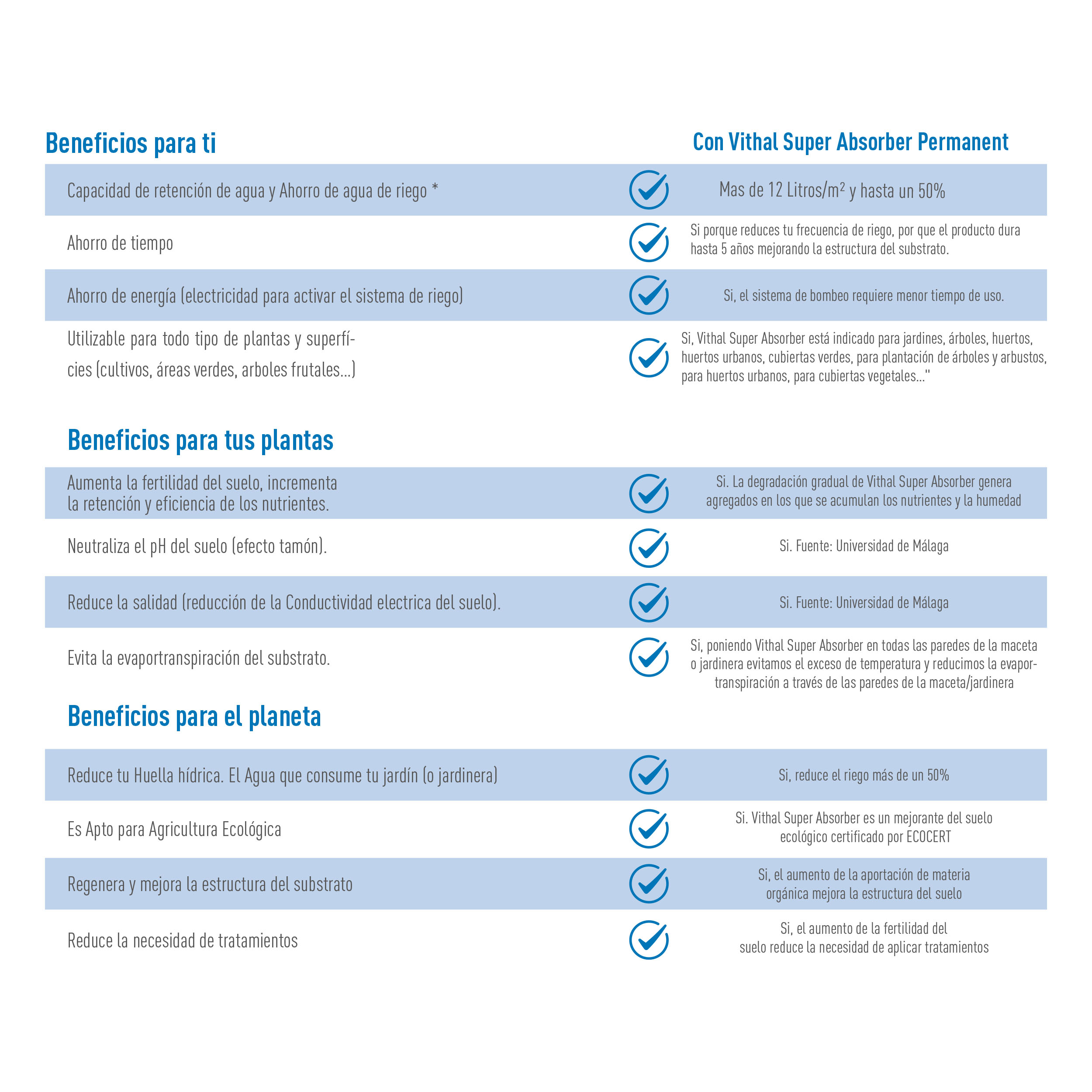 Super Absorber Permanent es la elección inteligente para reducir el riego en cualquier ubicación, jardineras, jardín, huerto, cubierta verde...