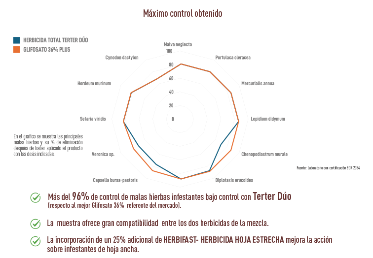 La elevada compatibilidad de los dos herbicidas permite obtener efectos eficientes en breve espacio de tiempo.